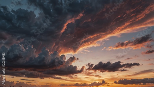 © Shehla, Fototapeta premium Beautiful sunset with clouds . A dramatic sky with dark and orange clouds .