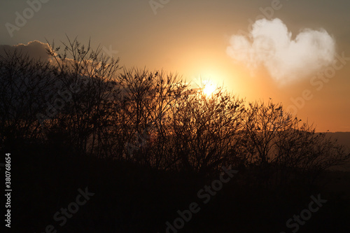 Obraz premium Beautiful sunset with heart shaped cloud.