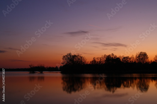 © Sandor, Obraz premium Beautiful sunset with orange clouds