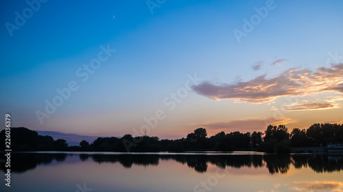 © Martin Erdniss, Obraz premium Beautiful sunset with reflections near Plattling - Isar - Bavaria - Germany