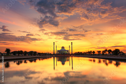 Obraz premium Beautiful sunset with silhouette mosque in Thailand.