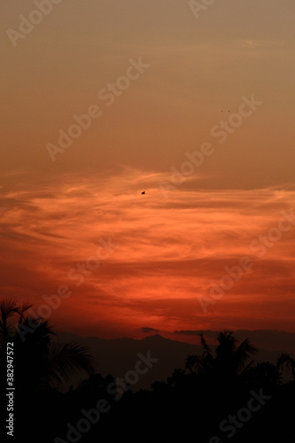 © adityajati, Obraz premium Beautiful sunset with the silhouette of coconut trees