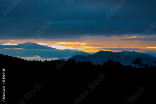 Fototapeta premium Beautiful sunshine at misty morning mountains at north thailand