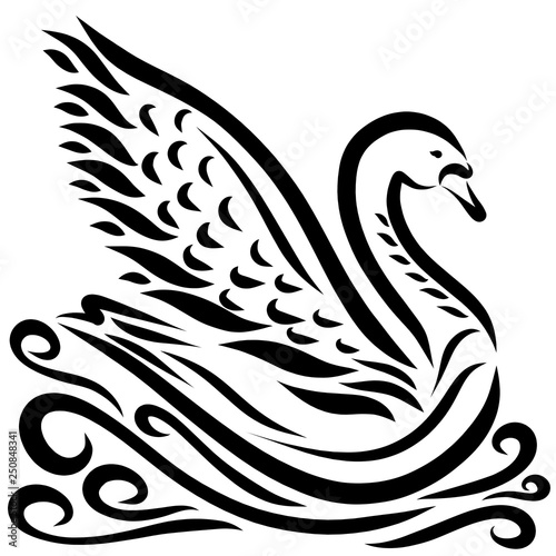 Fototapeta premium Beautiful swan floating on the wavy waves
