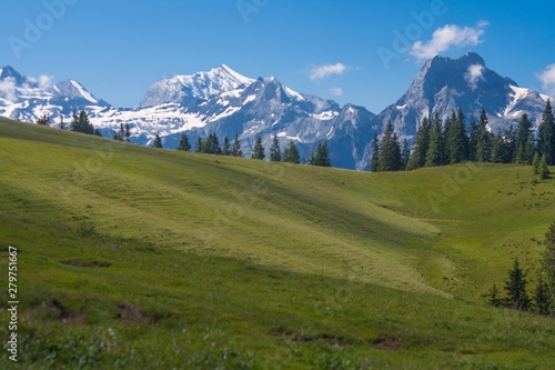 © ALENA, Fototapeta premium Beautiful swiss alps mountains. Alpine meadows