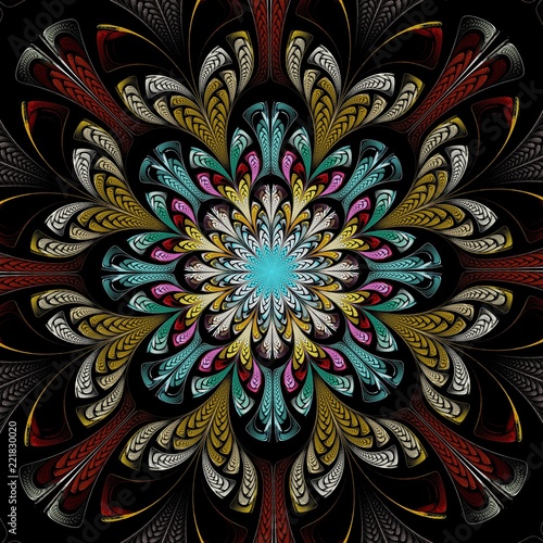 Obraz premium Beautiful Symmetrical fractal mandala, flower or butterfly, digital artwork for creative graphic design