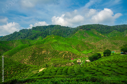 © amirul syaidi, Fototapeta premium beautiful tea farm scenery under cloudy sky at Cameron Highland, Malaysia