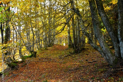 Obraz premium Beautiful temperate, deciduous, broadleaf beech forest in autumn