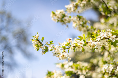 Obraz premium Beautiful tender tree blossom in sunny light, floral background, spring...