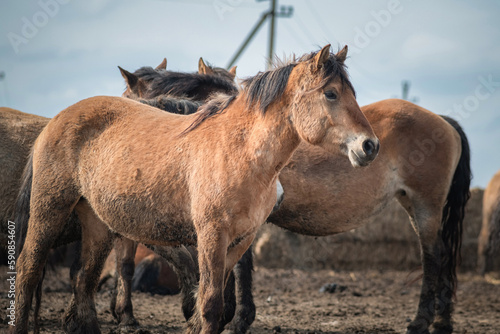 © shymar27, Fototapeta premium Beautiful thoroughbred horses in the spring on a farm in a paddock.