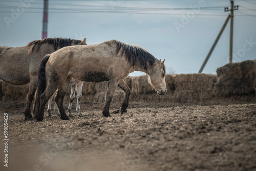 © shymar27, Fototapeta premium Beautiful thoroughbred horses in the spring on a farm in a paddock.