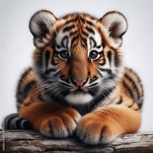 Obraz premium Beautiful tiger cub on a white background