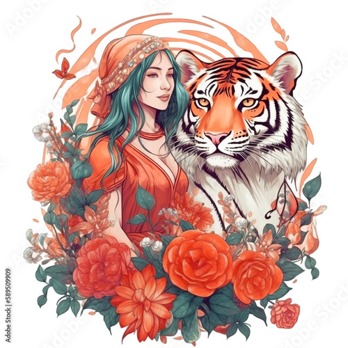 © Ha, Obraz premium Beautiful Tiger Goddess Bundle
