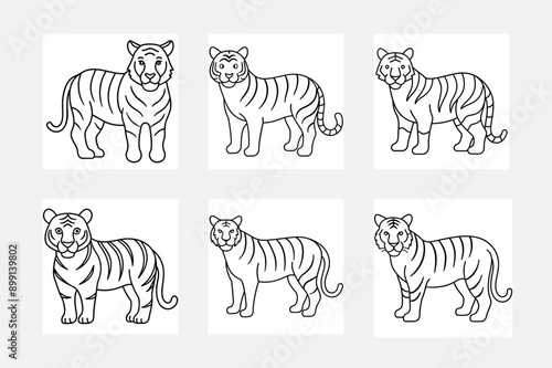 © Bappaditya Roy, Obraz premium Beautiful Tiger Line Art Set Illustration Collection
