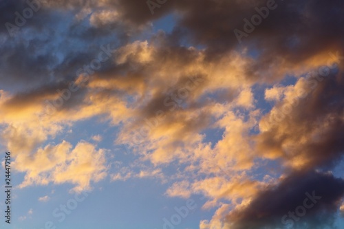 © Dancing Man, Fototapeta premium beautiful toned sun colored clouds on the sky for using in design as background.