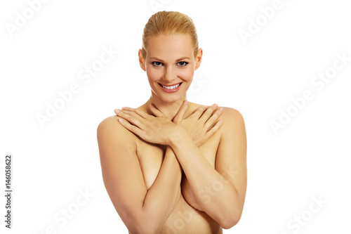 © Piotr Marcinski, Obraz premium Beautiful topless woman covering her breast