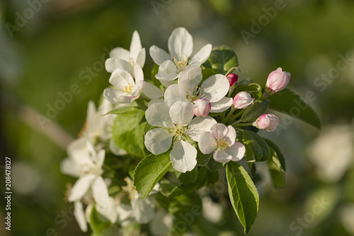 © Elena Verba, Obraz premium beautiful tree an Apple tree in flower on the green grass with the sun