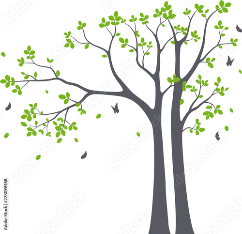 © radenmas, Obraz premium Beautiful tree branch with birds silhouette background for wallpaper sticker