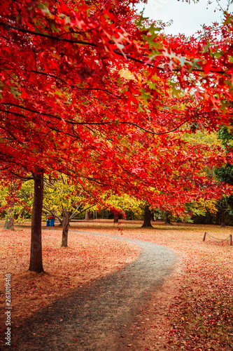 © Judah, Naklejka premium Beautiful Trees in Autumn Lining Streets in Town