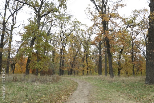Naklejka premium Beautiful trees in park. Picturesque autumn landscape