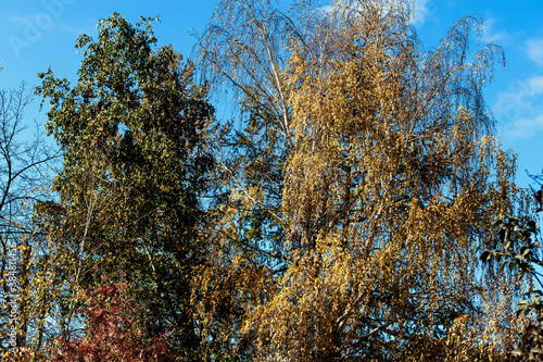 © Mikhail Galyshev, Fototapeta premium Beautiful trees of different colors and shades grow in the park.
