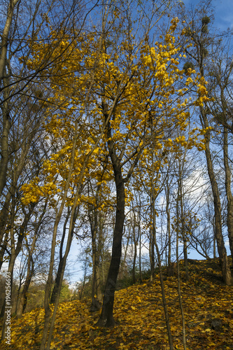 © Maksym, Obraz premium Beautiful trees set against the blue sky. Sunset at the autumn