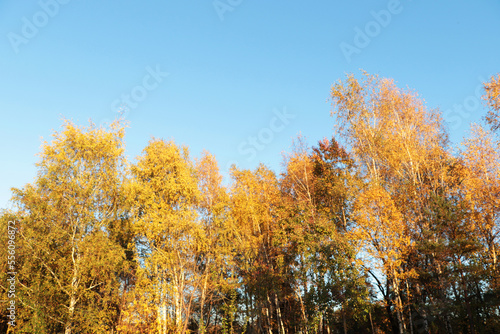 © New Africa, Fototapeta premium Beautiful trees with bright leaves against sky on autumn day