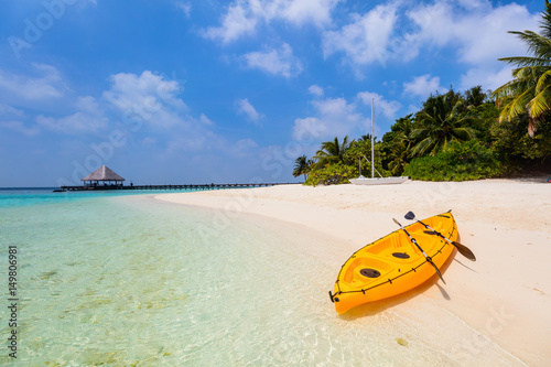 Obraz premium Beautiful tropical beach at exotic island in Maldives