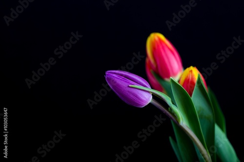 © milosz_g, Naklejka premium Beautiful tulip flowers isolated on black background