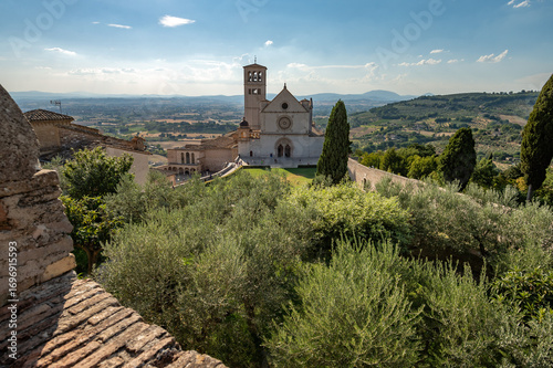 Naklejka premium Beautiful Tuscan historical Assisi Cathedral in the city of Assisi, Tuscany, Italy, Europe. Medieval atmosphere