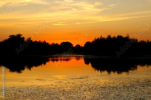 © tiger2506, Obraz premium Beautiful twilight colors at sunset by the forest lake