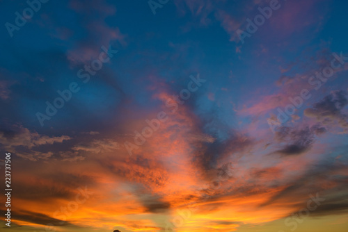 Fototapeta premium Beautiful twilight sky with orange and blue colour dramatic cloud.