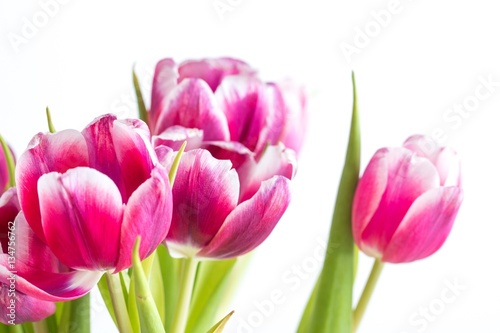 Fototapeta premium Beautiful two colored tulips close up on white background