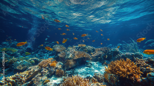 © Oppilamani, Fototapeta premium Beautiful Underwater Scenery with Various Types of Fish and Coral Reefs