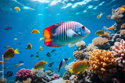 Fototapeta premium Beautiful underwater view of coral reef and tropical fish