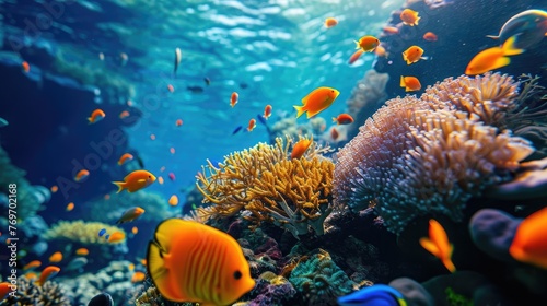 © Kosvintseva, Naklejka premium Beautiful underwater world and its inhabitants