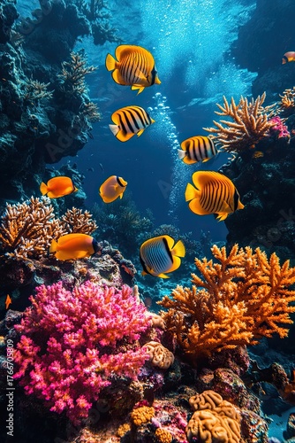 Naklejka premium beautiful underwater world with corals and tropical fish