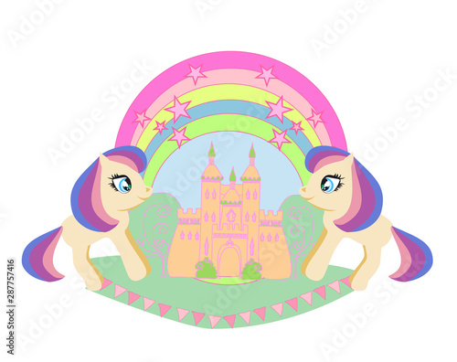 Obraz premium Beautiful unicorn and fairy-tale princess castle frame