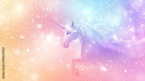 © Mitchell, Fototapeta premium Beautiful unicorn illustration in pastel colors with magical sparkles and fantasy background design art