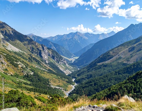 © Artbi, Fototapeta premium Beautiful valley between mountain ranges showing natural landscape and scenic view