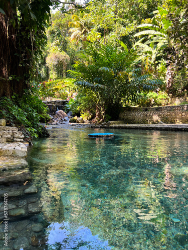 © Alfy, Fototapeta premium Beautiful vibrant Garden with waterfalls and colorful flowers