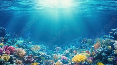 Fototapeta premium Beautiful vibrant underwater coral reef scene with sunlit surface