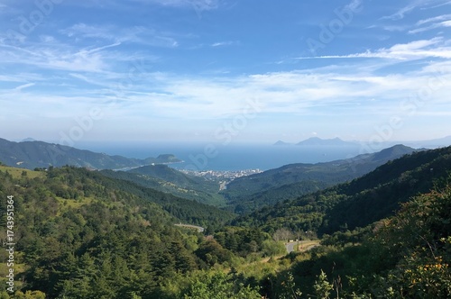 © ArtificialHorizons, Fototapeta premium Beautiful view from a mountain pass in a historic coastal town.
