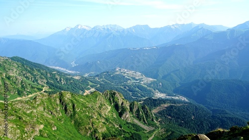© Viacheslav, Fototapeta premium Beautiful view from the peak of Black Pillar mountain, Krasnaya Polyana