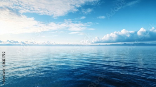 © ThisDesign, Obraz premium beautiful view of a large blue beach with large white clouds generative ai