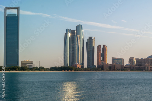 © Makaty, Naklejka premium Beautiful view of Abu Dhabi city beach, towers and buildings