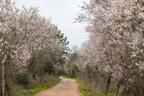© Mauro Rodrigues, Fototapeta premium Beautiful view of almond trees in full bloom in nature.