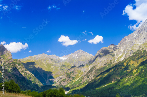 Fototapeta premium Beautiful view of alpine meadows. Upper Svaneti, Georgia, Europe