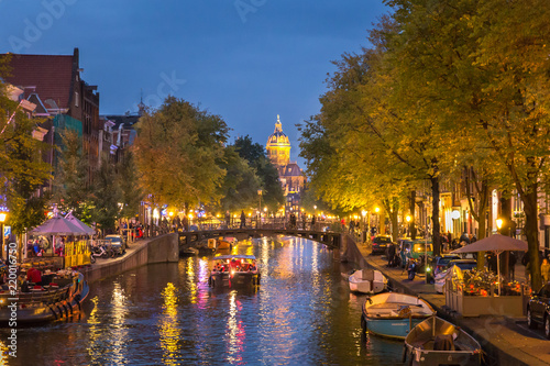 Naklejka premium Beautiful View of Amsterdam in blue hour
