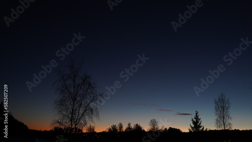 Fototapeta premium Beautiful view of an orange sunset in a forest with trees